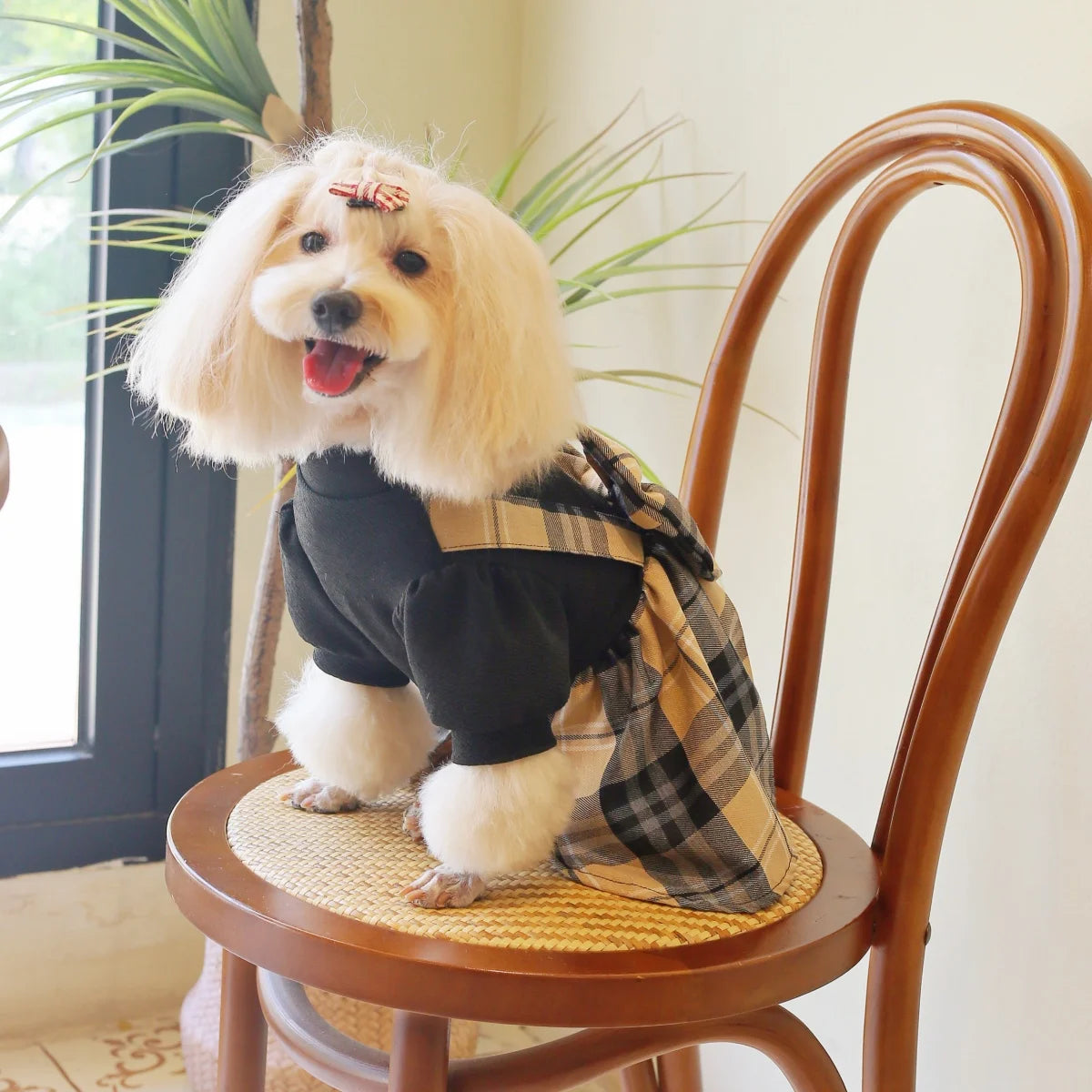Stretch black cloth patchworkkhaki colorgrids pattern bowspreppy styledress party play