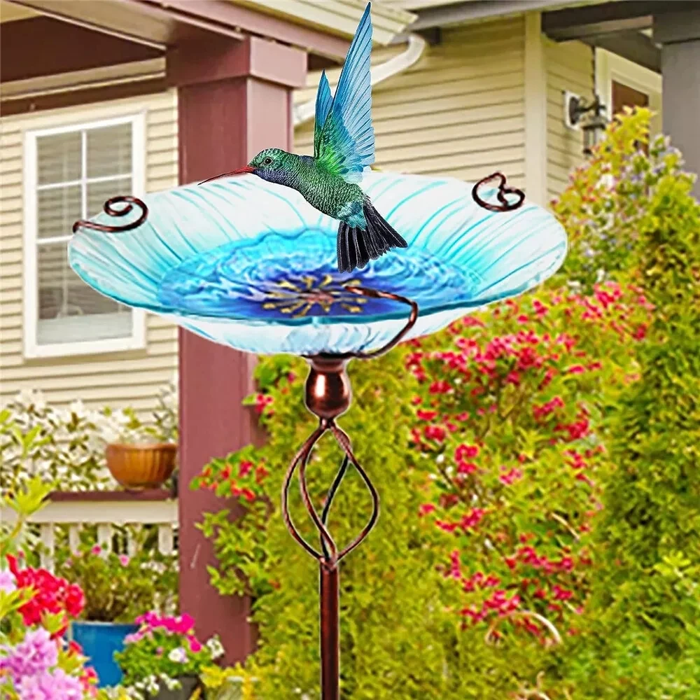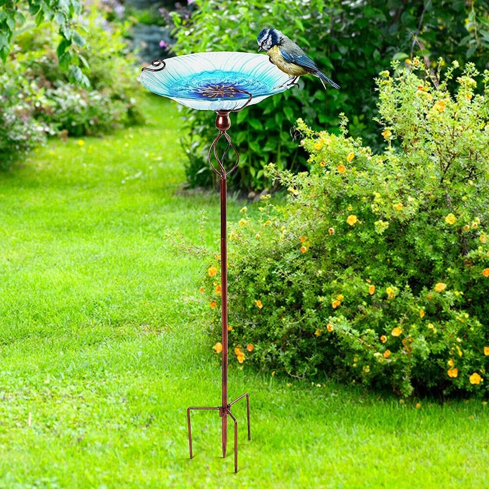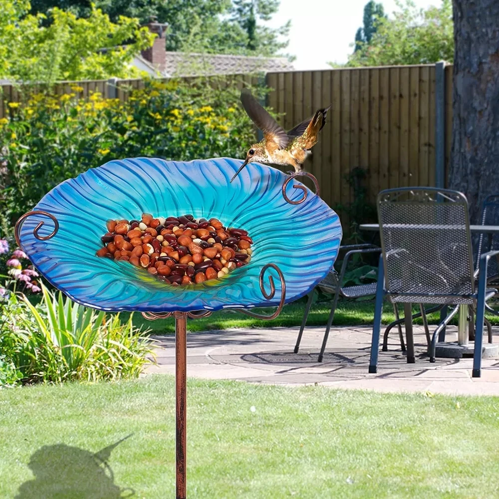 The glass bowl easily filled with water or food for wild birds.