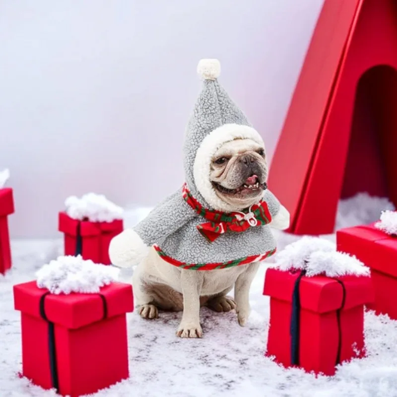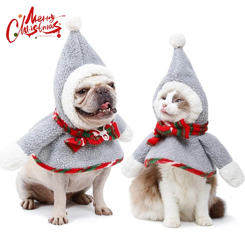 Christmas Snow Dog Costume Gray Xmas Pet Clothes Autumn Winter Pet Warm Clothes Funny Dog Cat Hoodies Coat Festival Party Gift