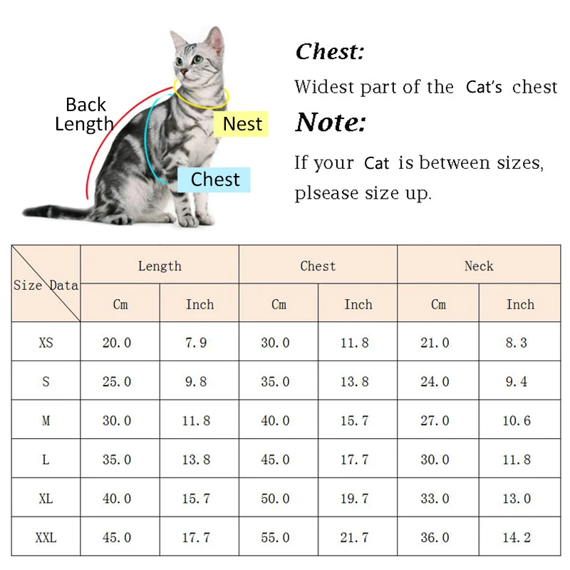 1.Pls kindly check your pet's measurements to make sure that the clothes fits pets before you order (1 Inch=2.54 Cm)