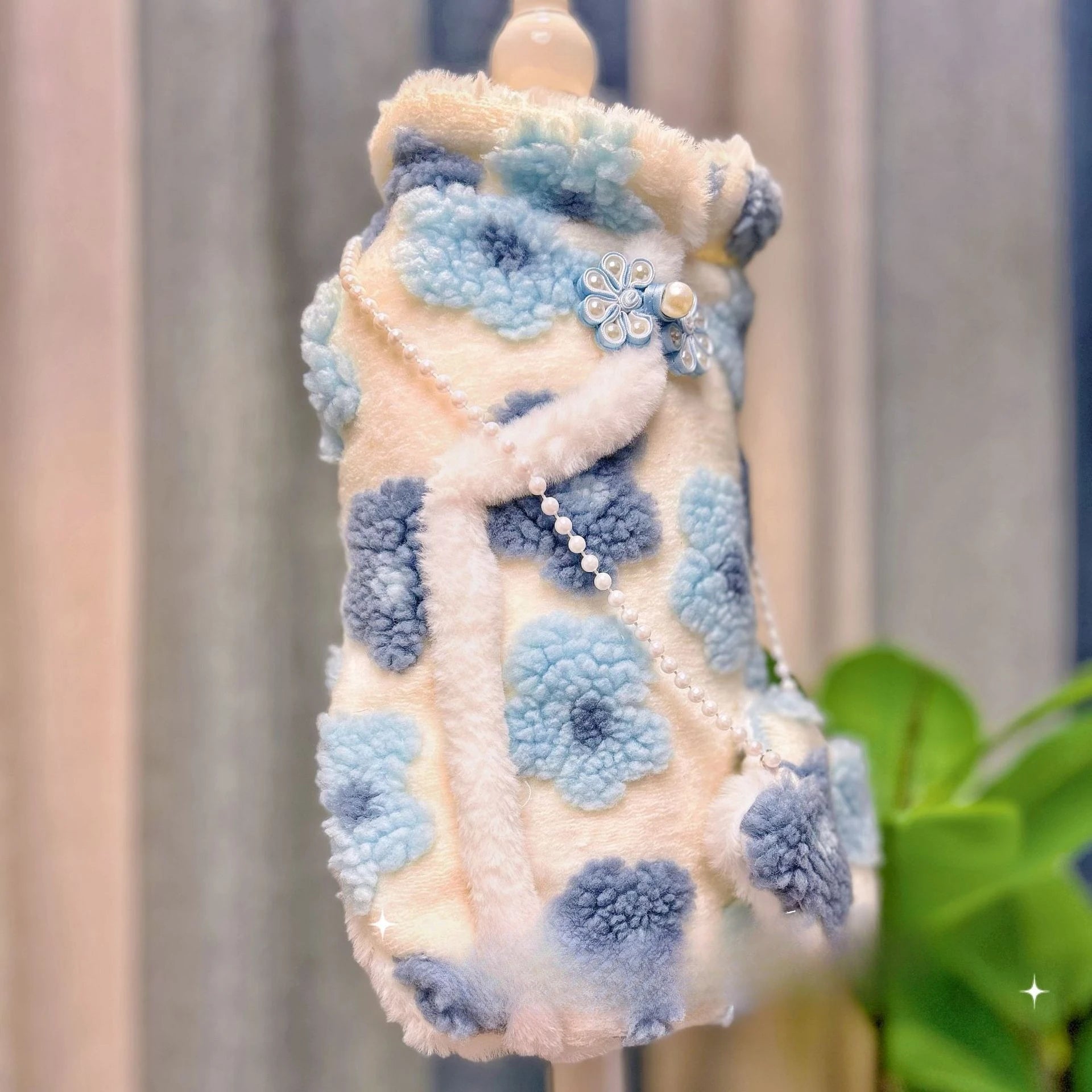 Pet Autumn/Winter Lamb Fleece Flower Dress