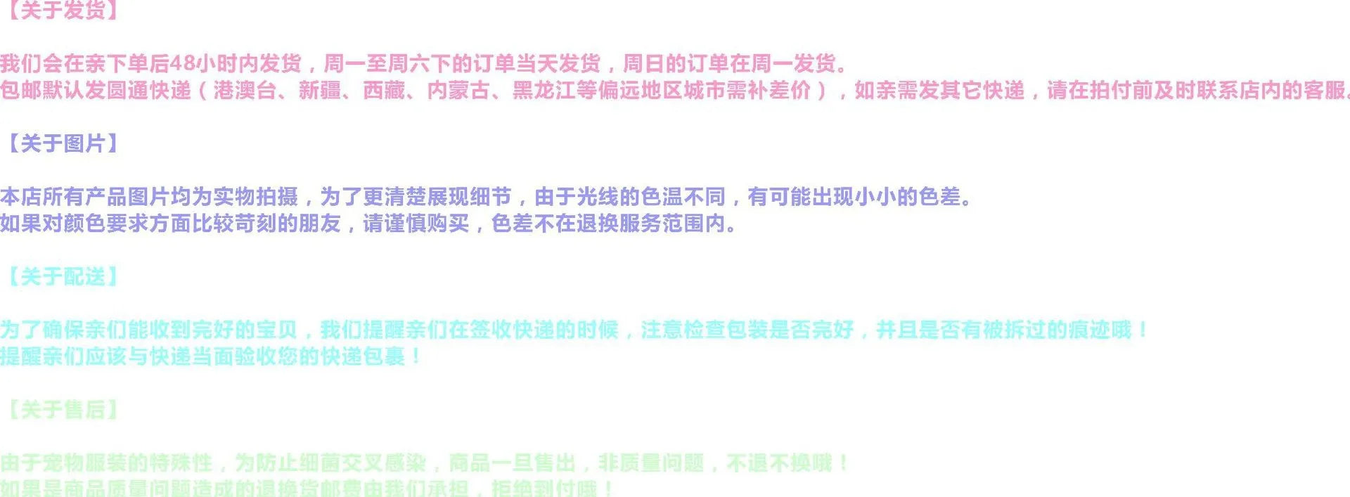 Tips: For a two legged shirt, the main reference is the chest circumference size, while for a four legged shirt, the main reference is the back length size.