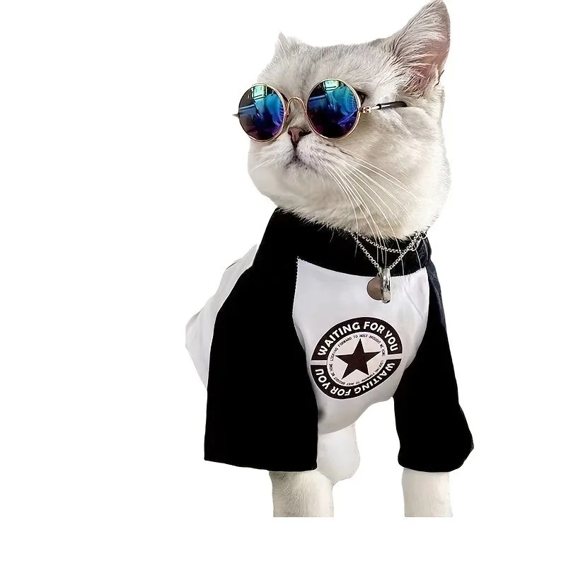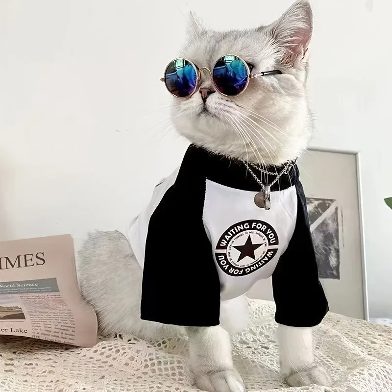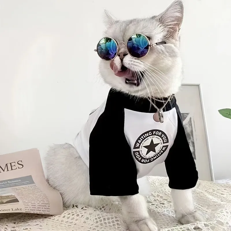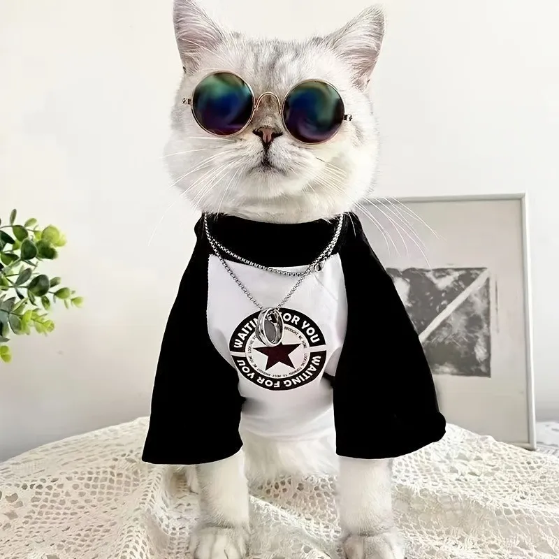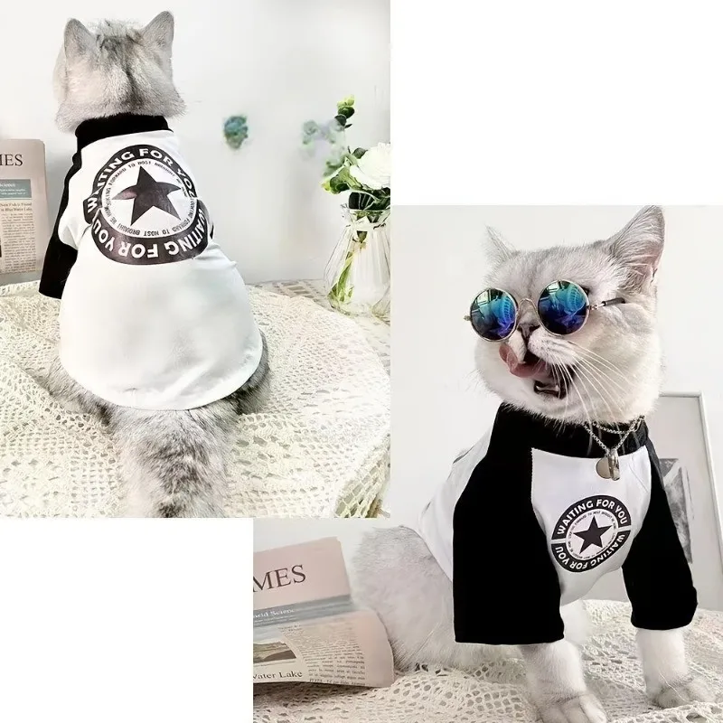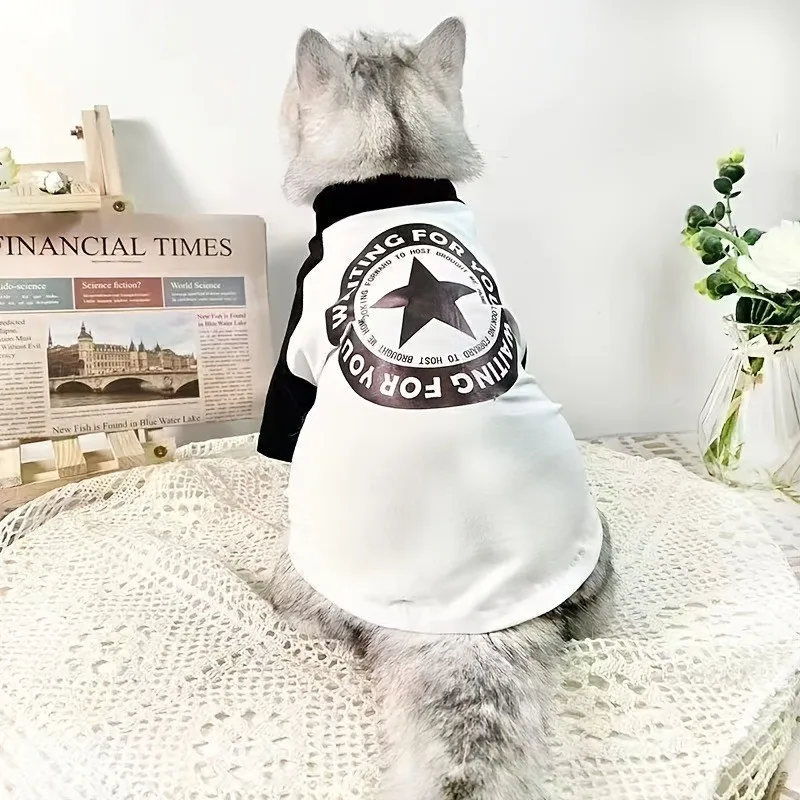 Pet Fashion Short-sleeved Black and White Splicing Five-pointed Star