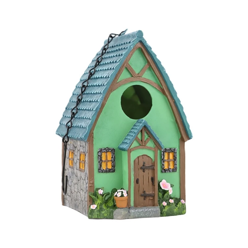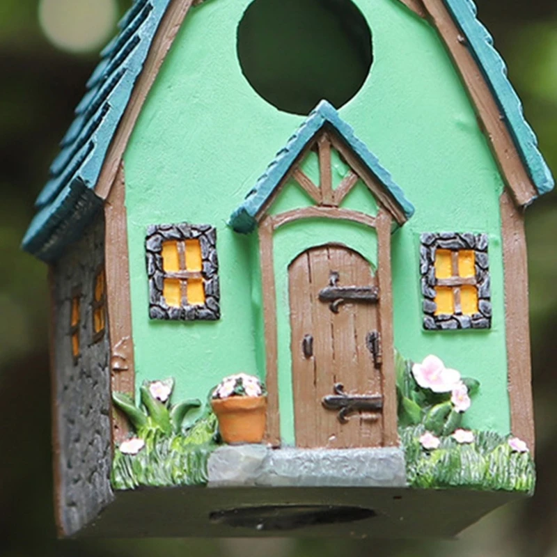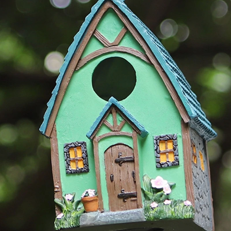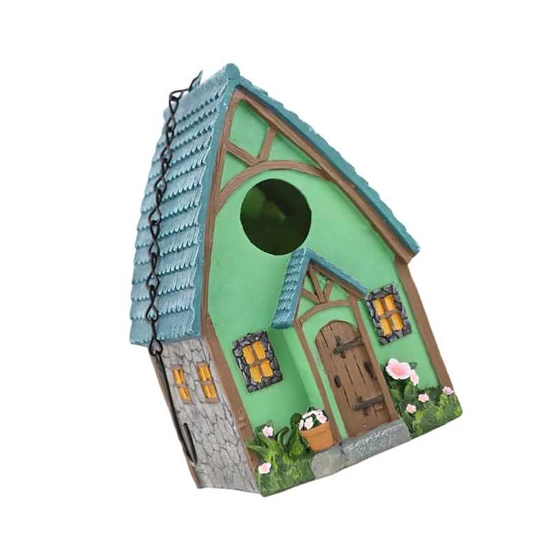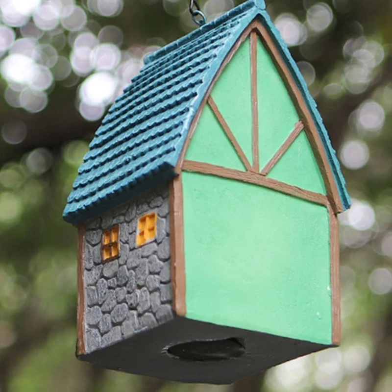 Use selected resin, this bird house features with entrance hole, great for small nesting birds while offer easy installation and maintenance.