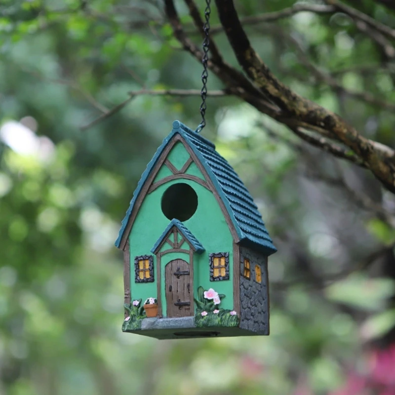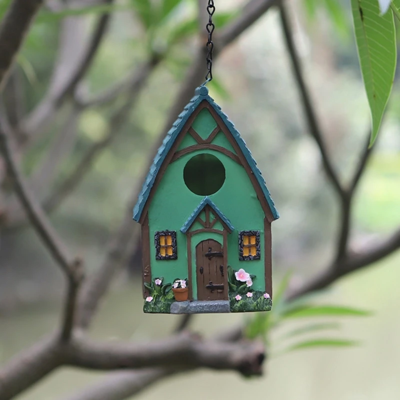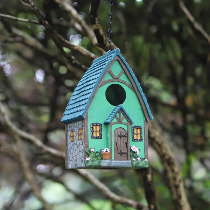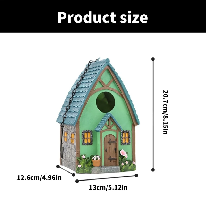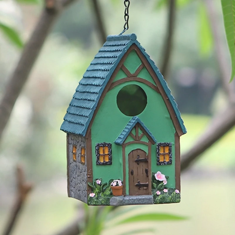 Use selected resin, this bird house features with entrance hole, great for small nesting birds while offer easy installation and maintenance.